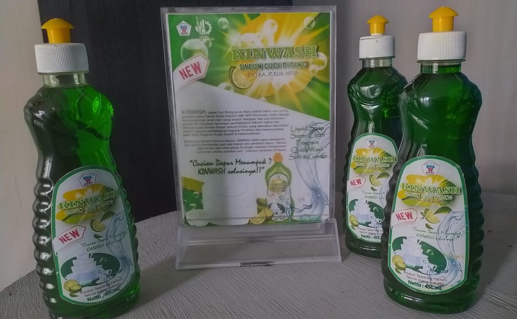 Siapa bilang produk buatan sekolah kalah saing dengan pabrik besar? Di SMK-SMTI Pontianak, para siswa konsentrasi keahlian Teknik Kimia Industri (TKI) sudah mampu menciptakan produk rumahan dengan standar kualitas yang diakui dunia industri, lho!